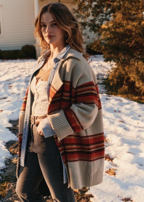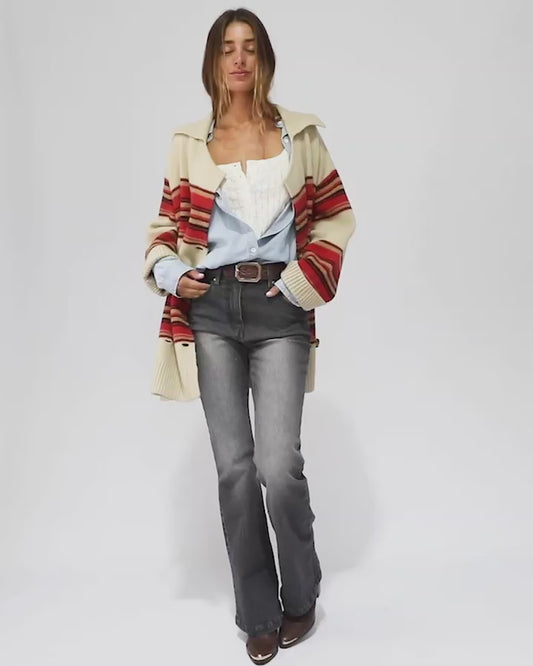 So Many Likes Oversized Knitted Cardi Coat - Stripe