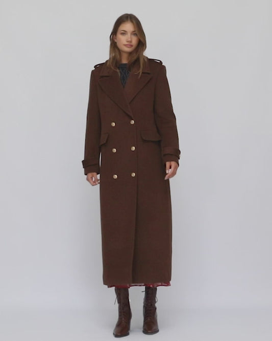 Command Wool Blend Double Breast Maxi Coat - Chocolate