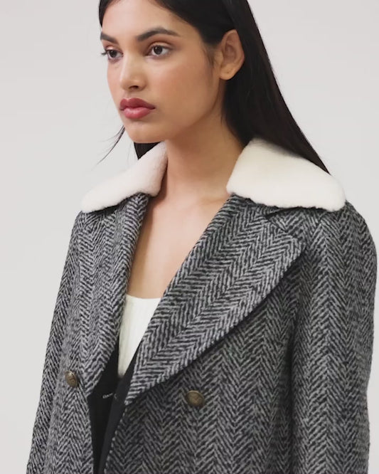 Liberty Sherpa Collar Wool Blend Coat - Charcoal