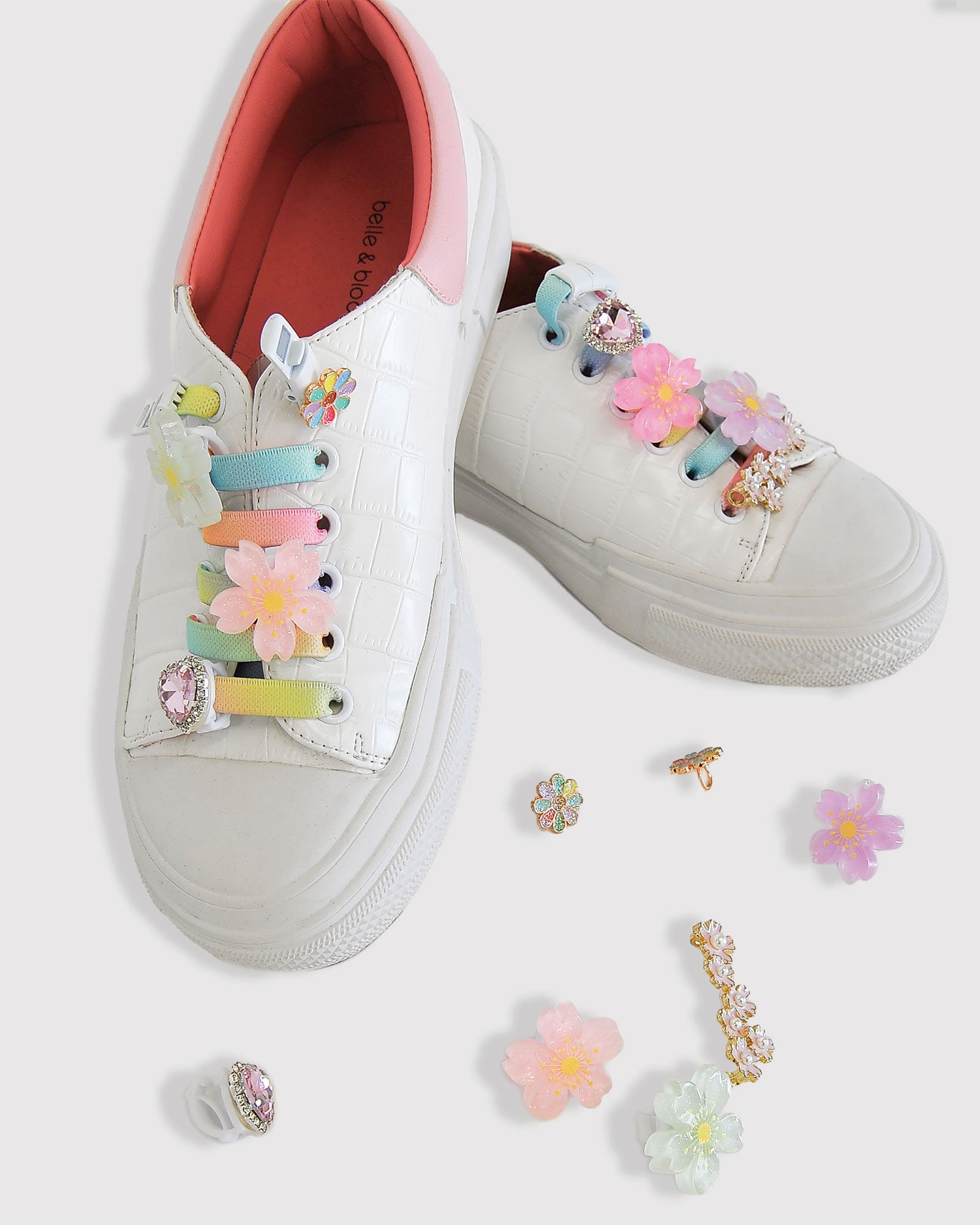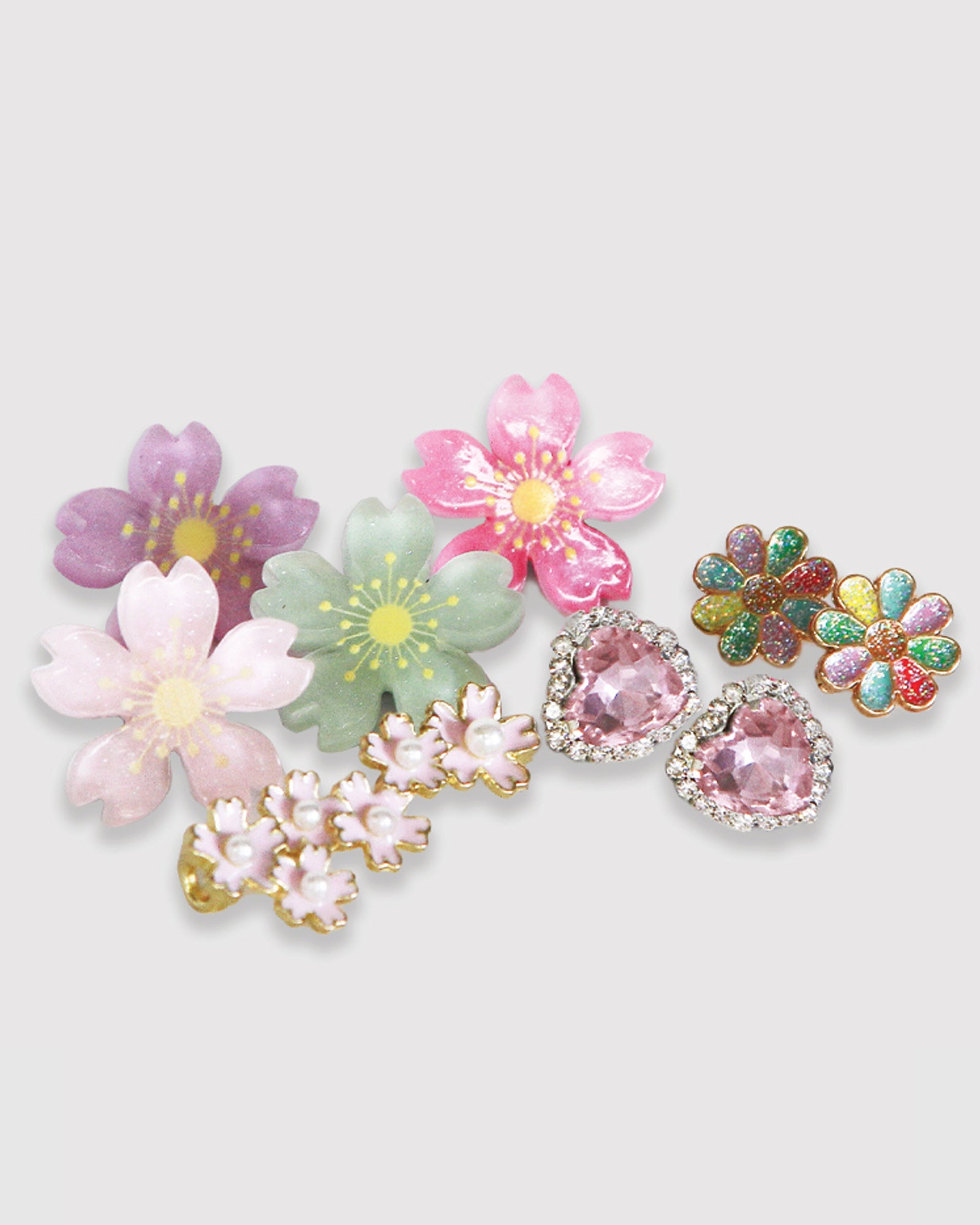 Adorned with glittery flowers and pink hearts embellished with sparkling rhinestones, each charm is a tiny treasure waiting to be discovered. Every girl can express her unique style and personality by mixing and matching these charming additions to her footwear.