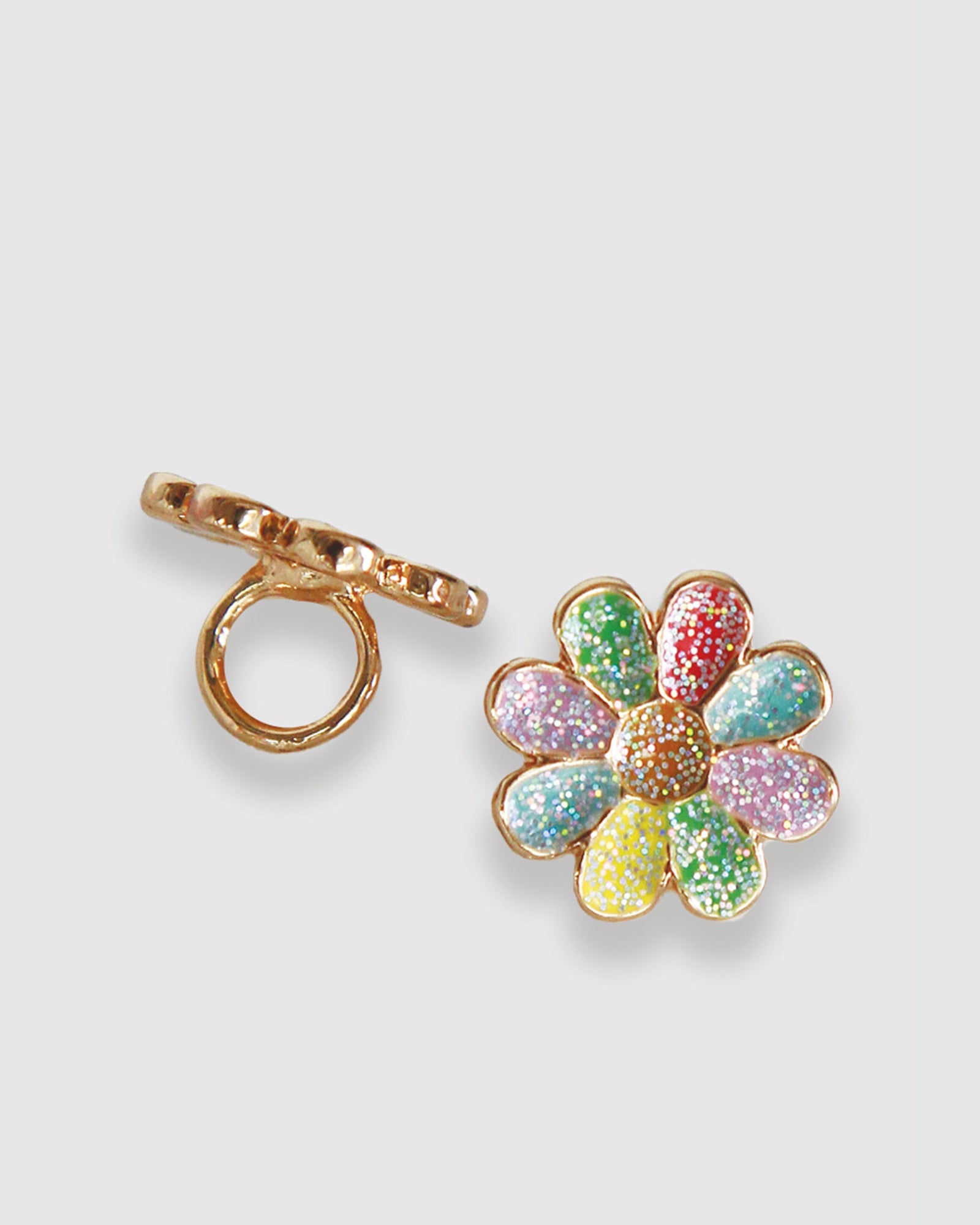 • 2 thread-on metal glitter flowers, 15mm diameter