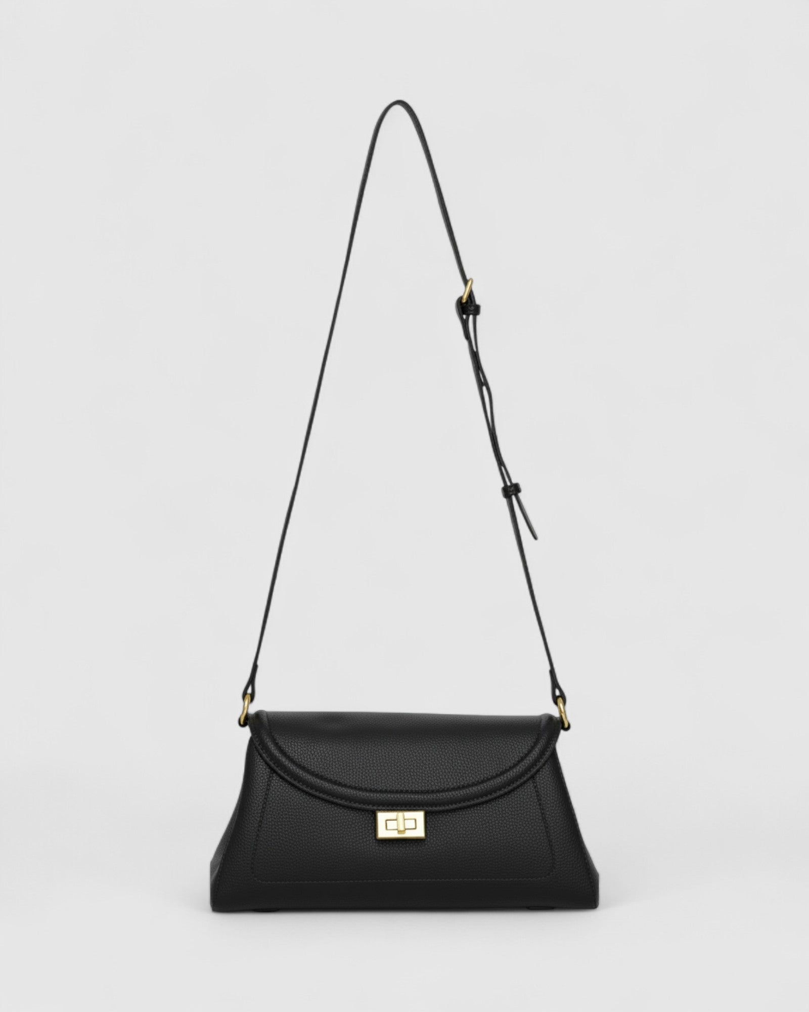 The Calista PU Bag is an elevated take on a timeless silhouette, blending everyday ease with refined elegance. Crafted from supple PU with a softly pebbled texture, this structured design is accented with luxe gold-tone hardware and Belle & Bloom’s signature logo plate. The curved flap front and turn-lock closure add a sophisticated finish, while the adjustable strap lets you wear it as a chic shoulder bag or an effortless crossbody.