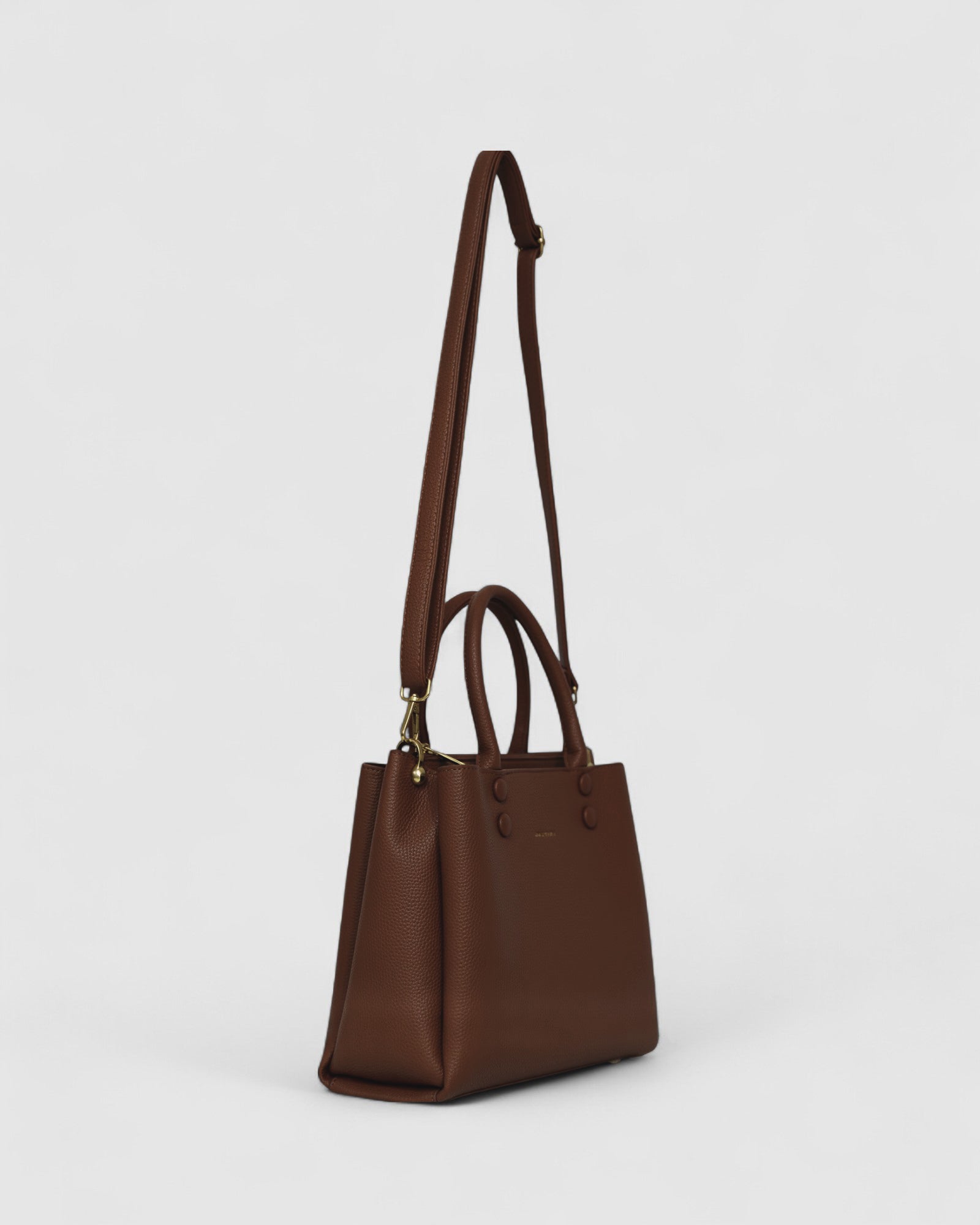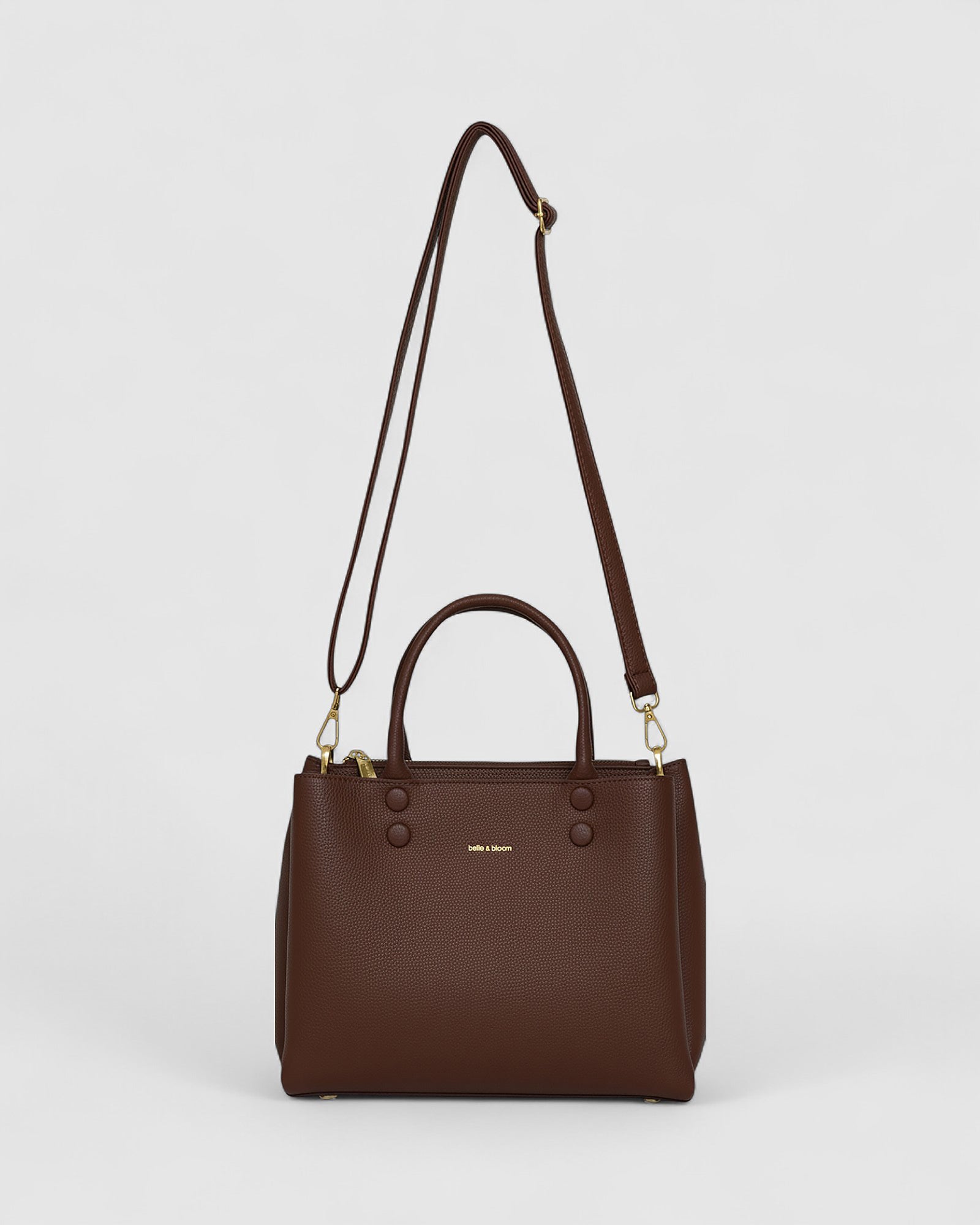 The Vivi Luna PU Bag is a timeless carryall designed for effortless versatility. Crafted from pebbled vegan PU with a softly structured silhouette, this bag transitions seamlessly from workdays to weekends. Double top handles and a detachable crossbody strap give you multiple styling options, while the subtle gold Belle & Bloom logo adds a polished finish.
