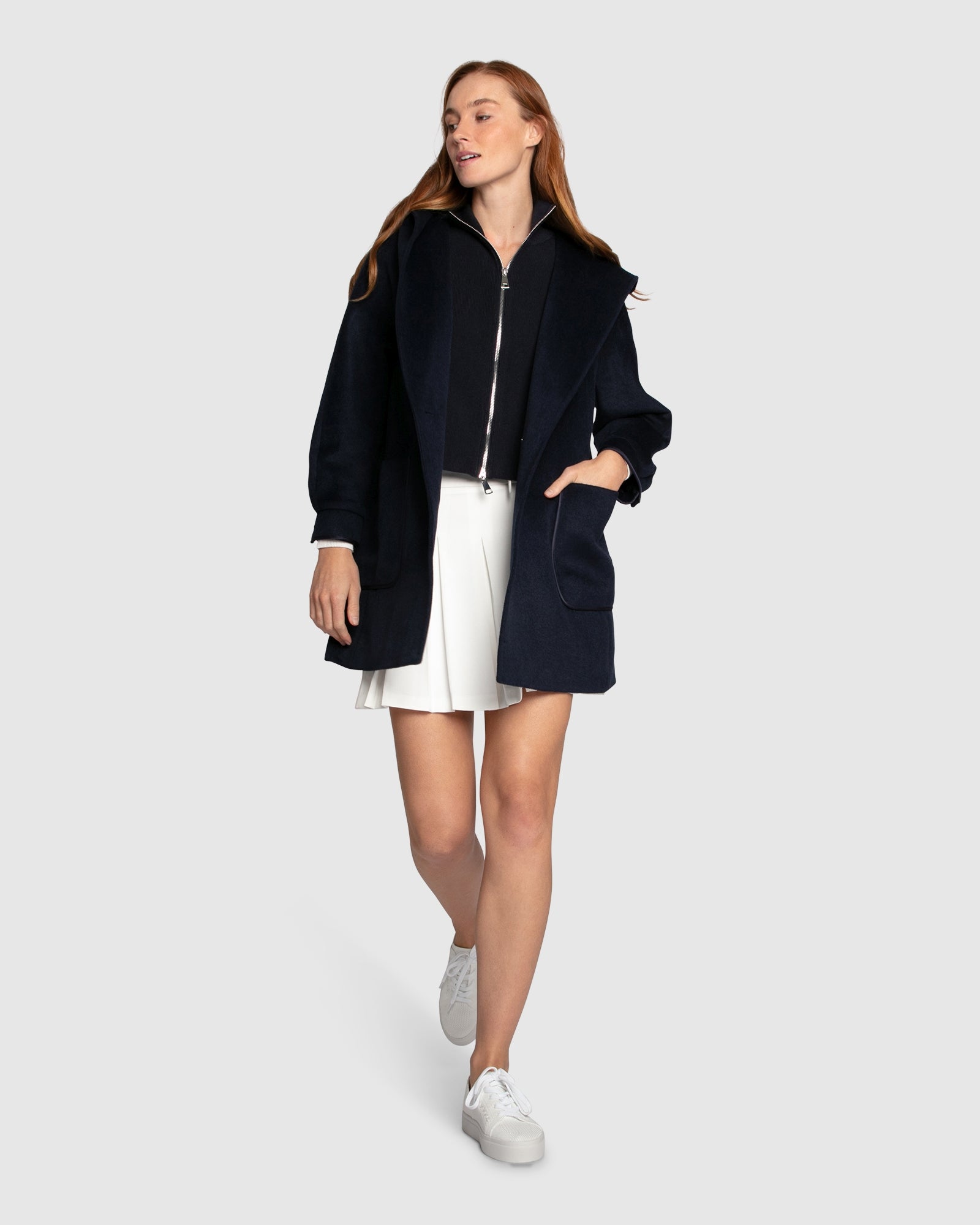 Colour Next To You Hooded Wool Blend Coat - Brown Next To You Hooded Wool Blend Coat - Navy
