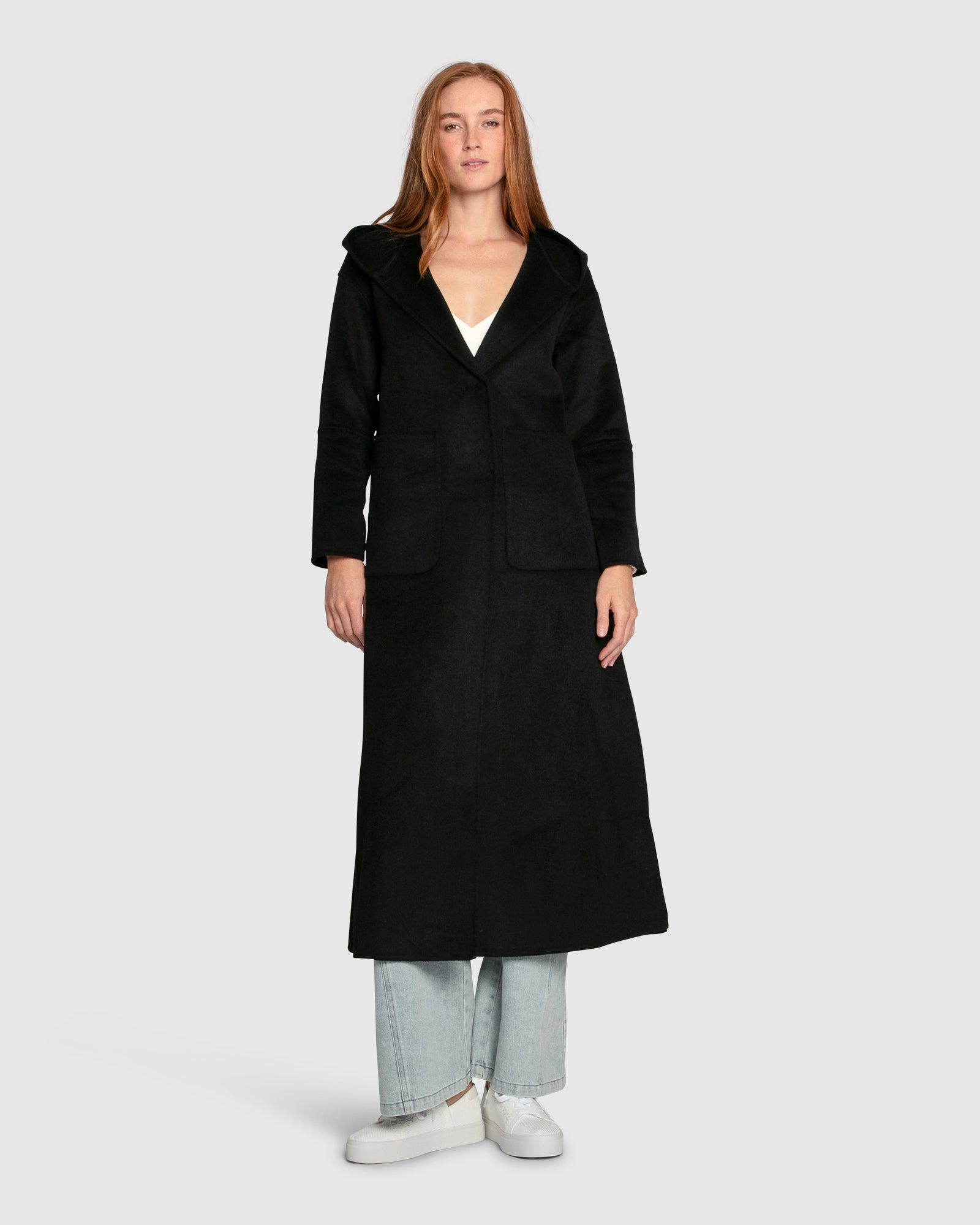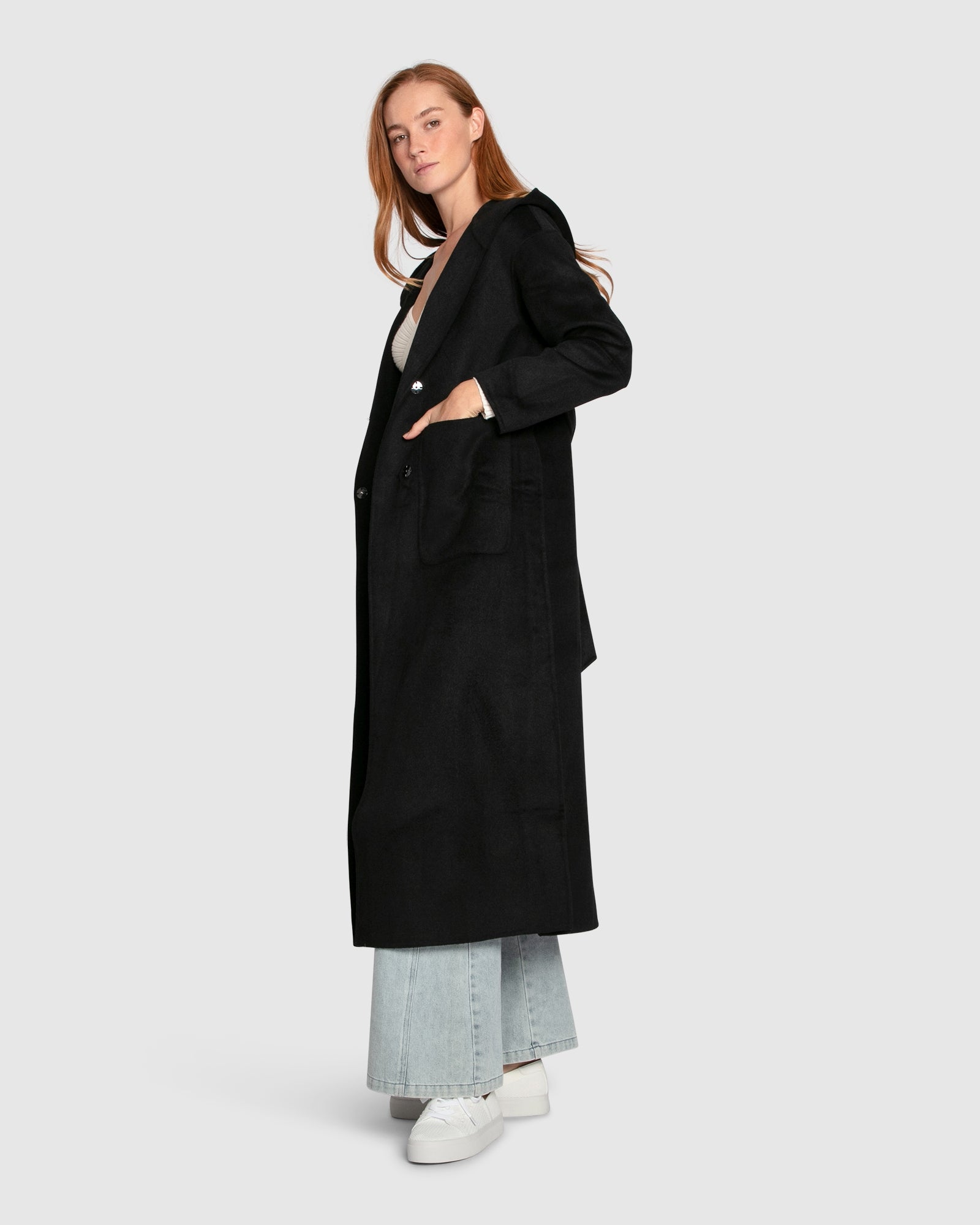 Walk My Way Wool Blend Oversized Maxi Coat - Black