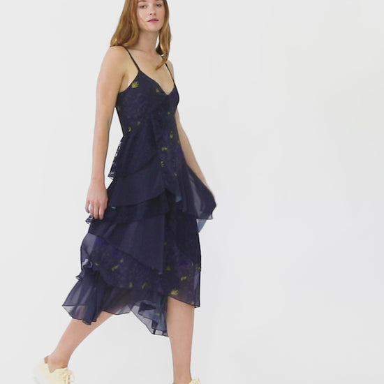 Charmed Floral Print Ruffle Midi Dress - Navy