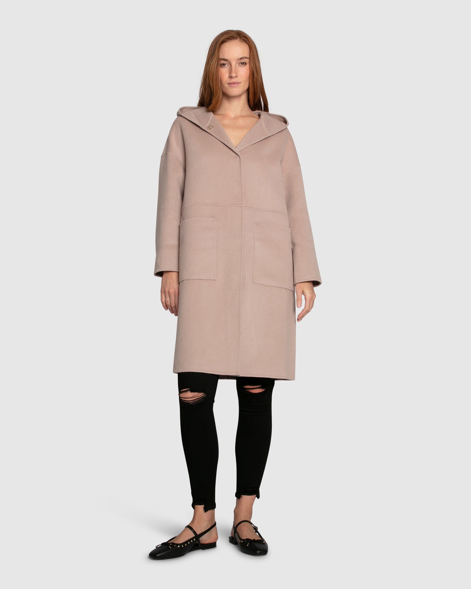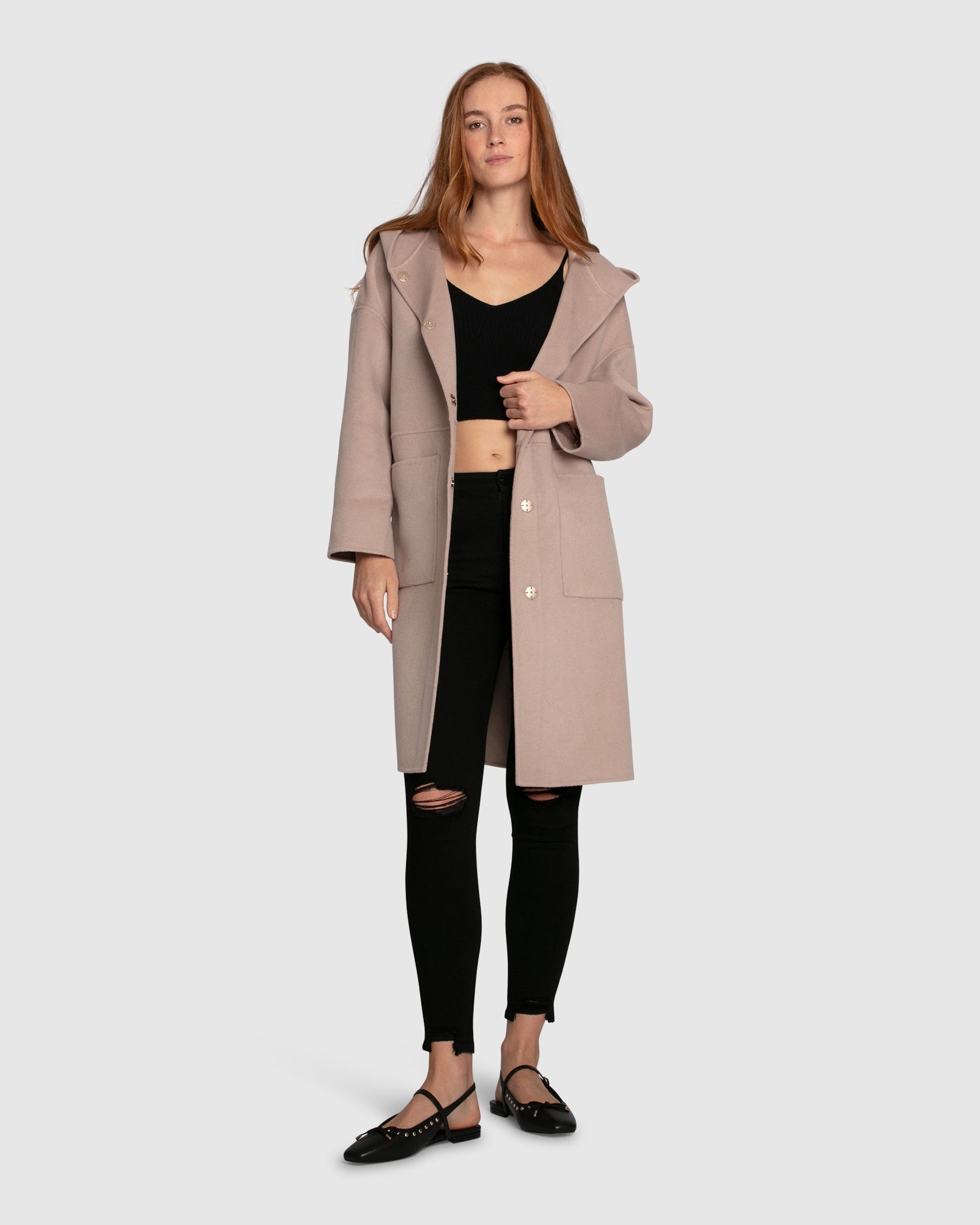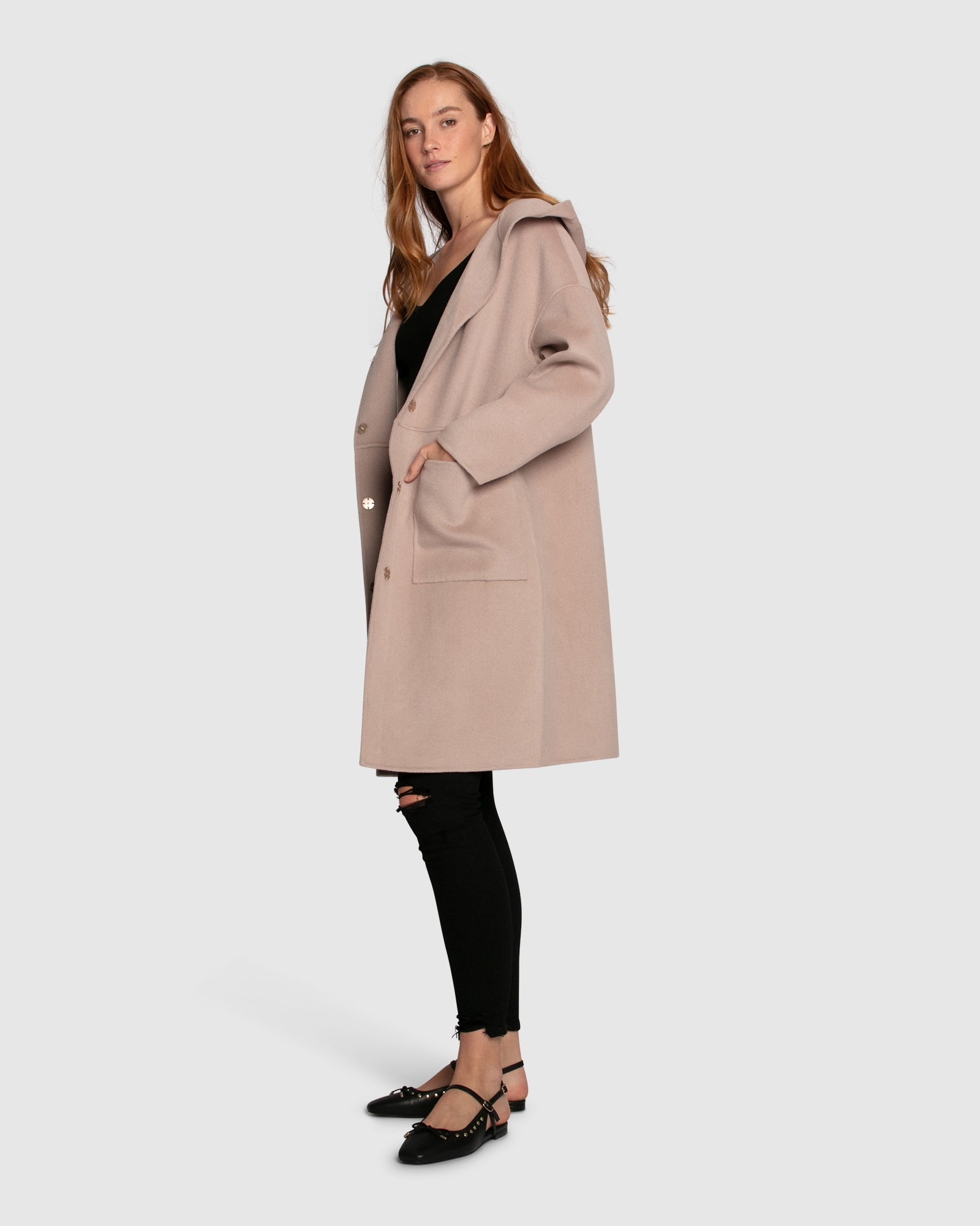 Sunday Morning Wool Blend Hooded Coat - Sand