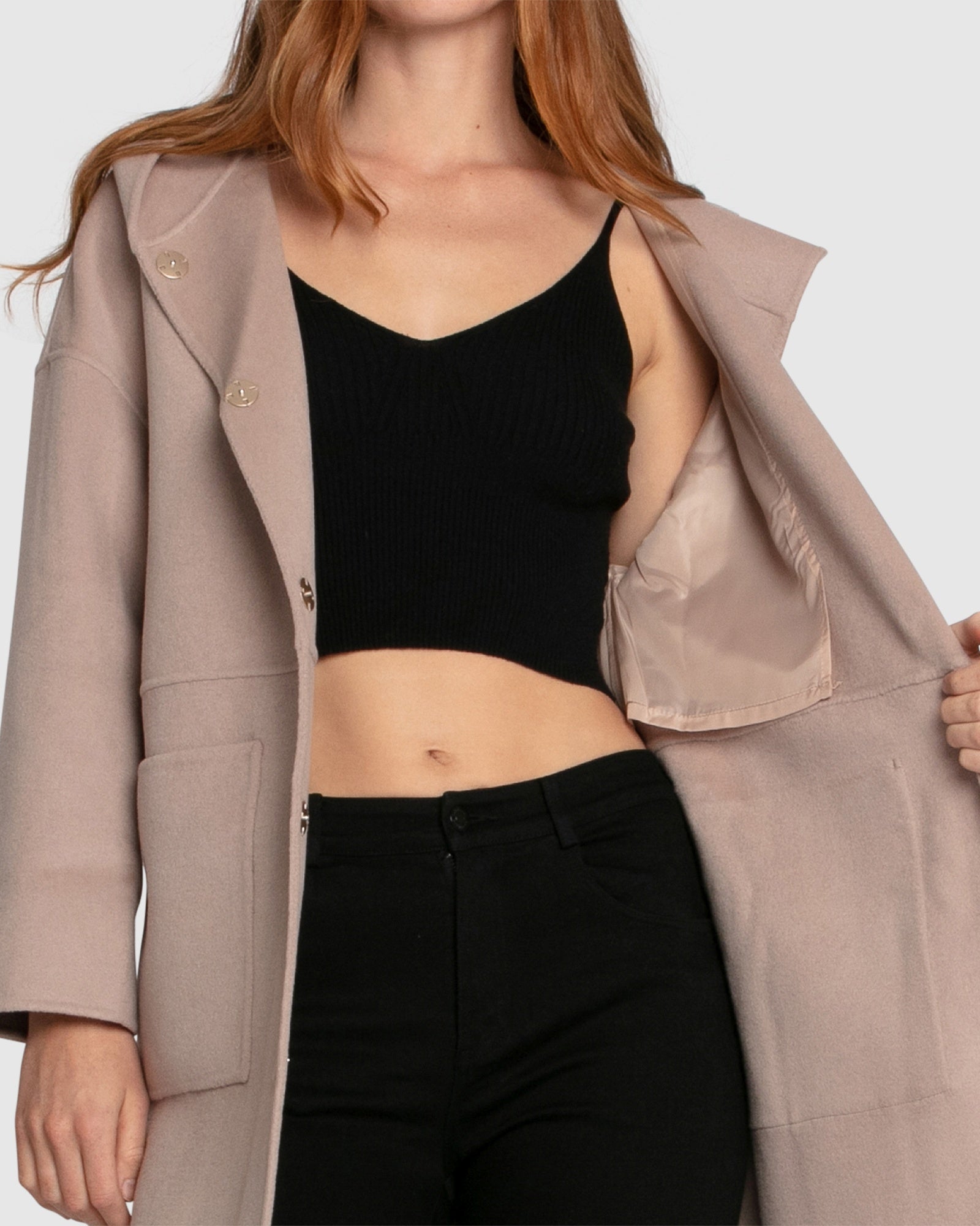 Embrace the cool weather with confidence with the Sunday Morning Hooded Coat. Designed for comfort and practicality the patch pockets offer enough space for all your essentials without sacrificing aesthetics and the half lined, wool blend construction creates the perfect balance of luxury, ease and comfort.