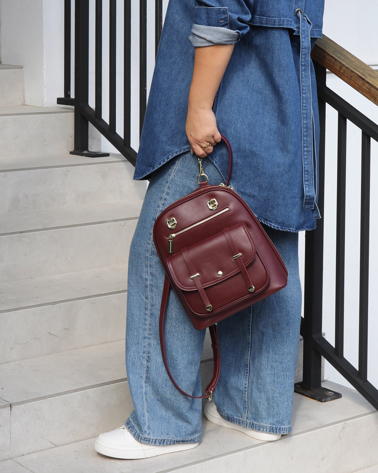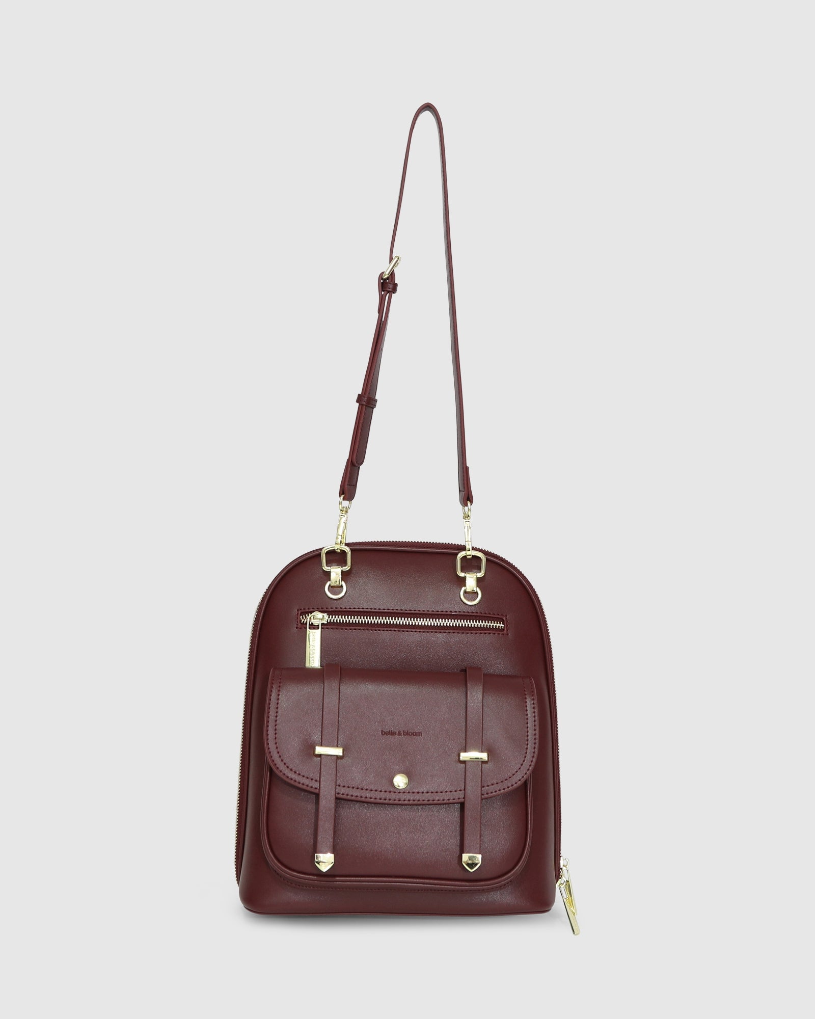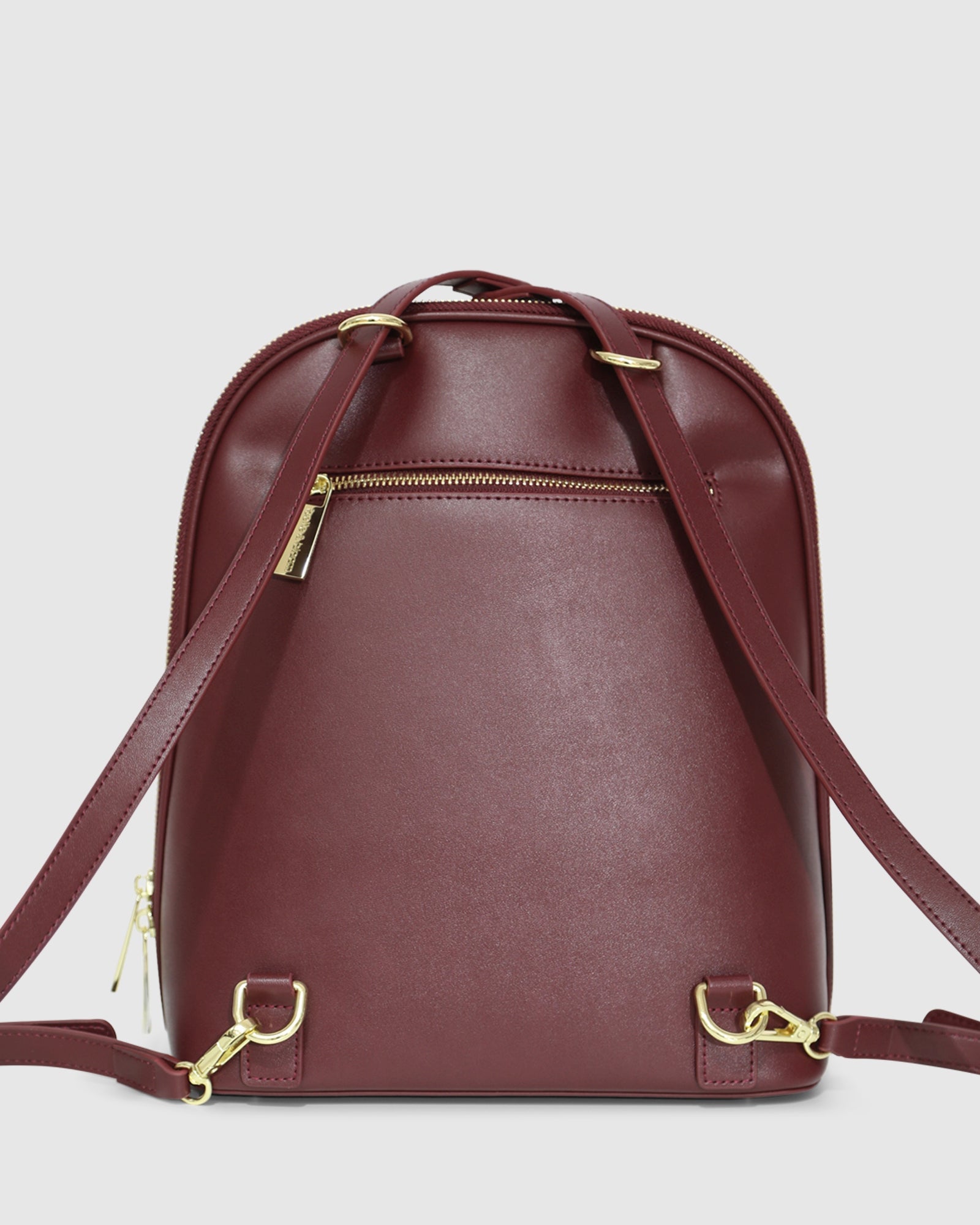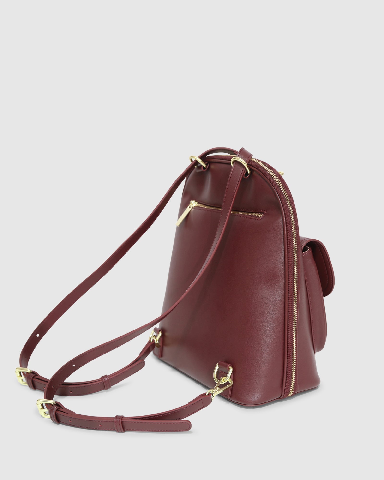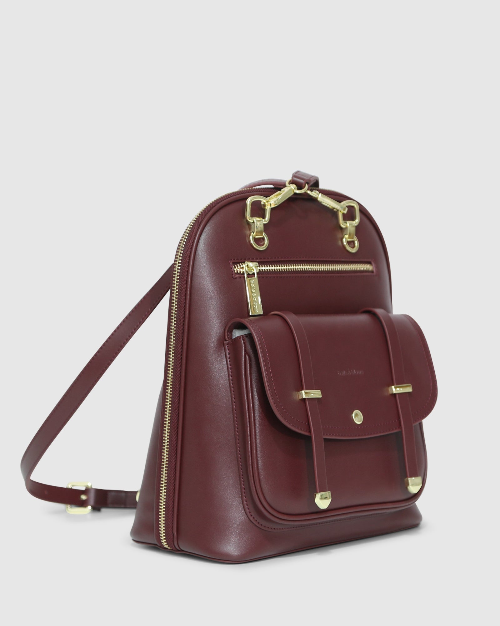 Function meets form with our 5th Ave Leather Backpack. Made from top quality leather it features a large zipped compartment with multiple internal and external pockets for easy organisation. It will fit your tablet, books and water bottle. Gold-toned hardware accentuates beautiful crossed shoulder strap design. It converts from backpack to shoulder bag in seconds. A true modern statement!