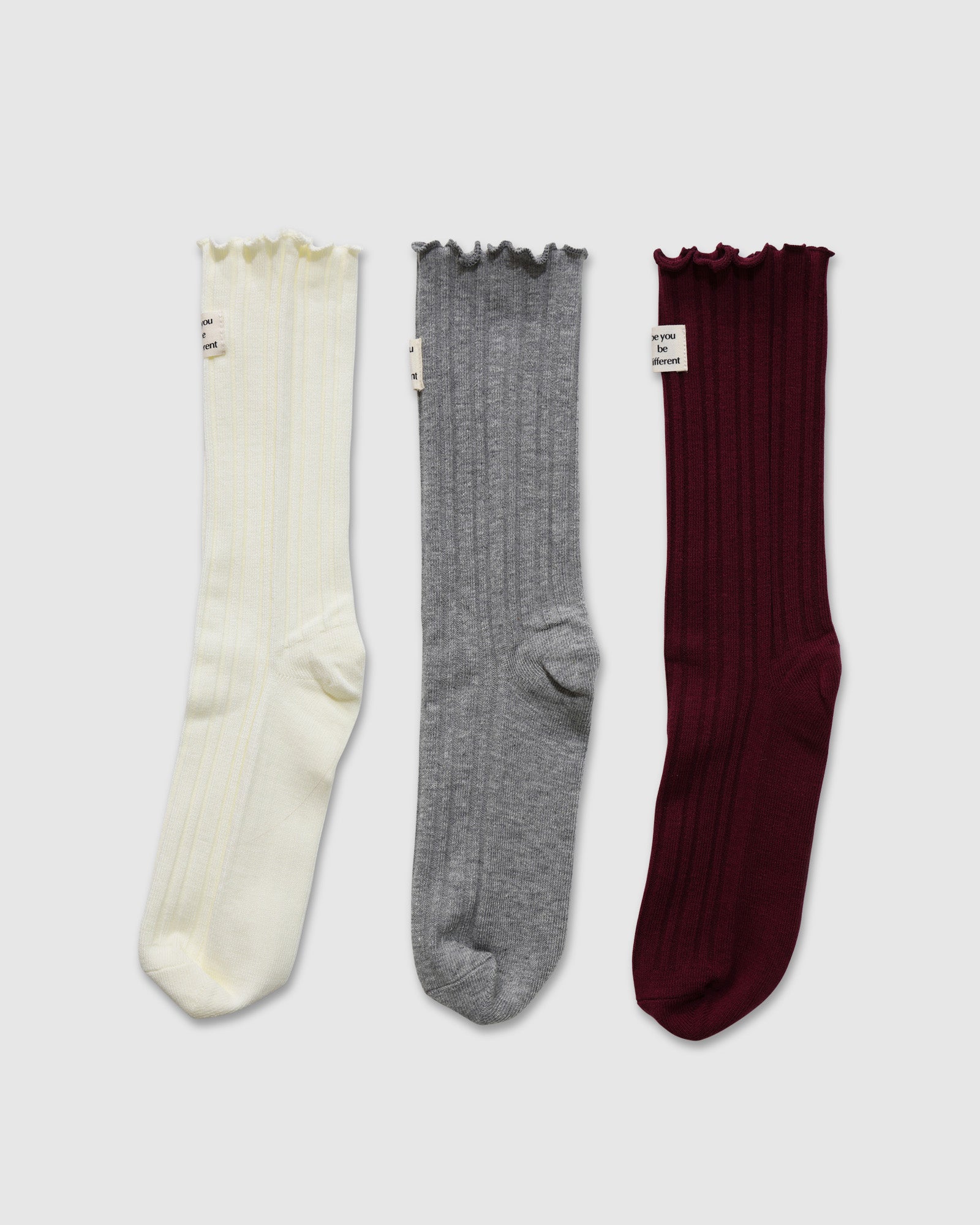 Elevate your everyday essentials with the Beloved 3 Pack Socks. This set includes three pairs of timeless crew socks, perfect for adding a touch of charm to any outfit. Designed in a classic ribbed silhouette, these socks offer a snug, comfortable fit that stays in place all day.