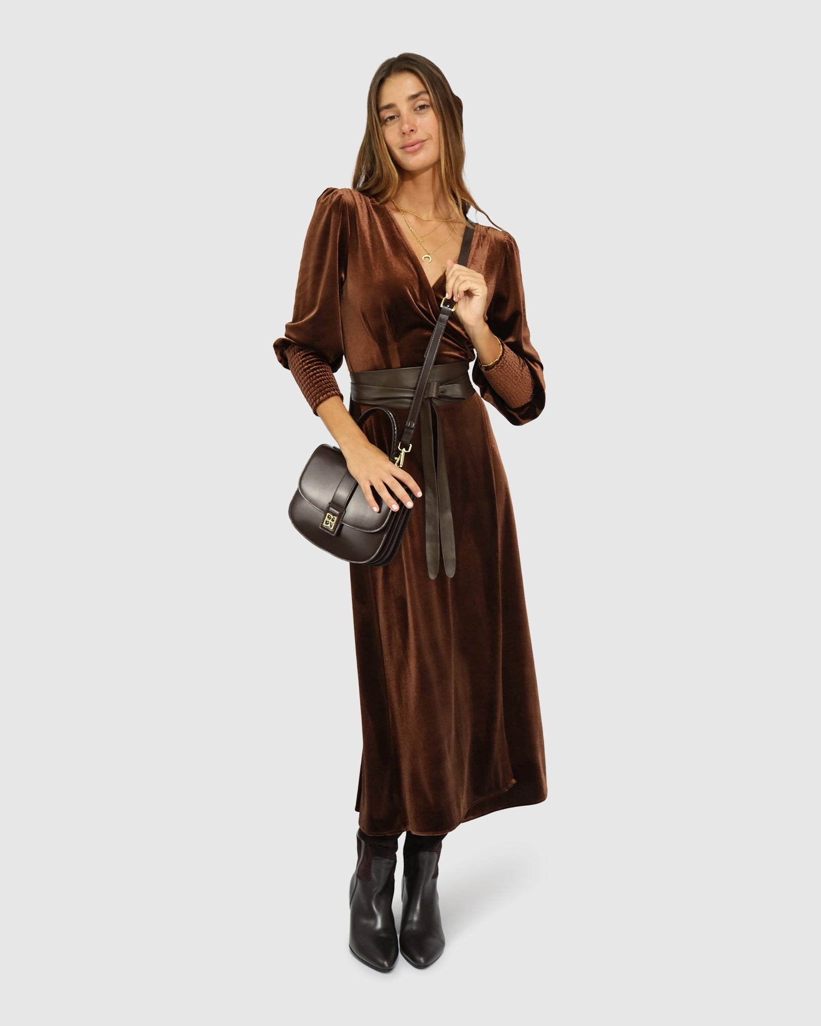 Current Mood Velvet Wrap Dress - Chocolate