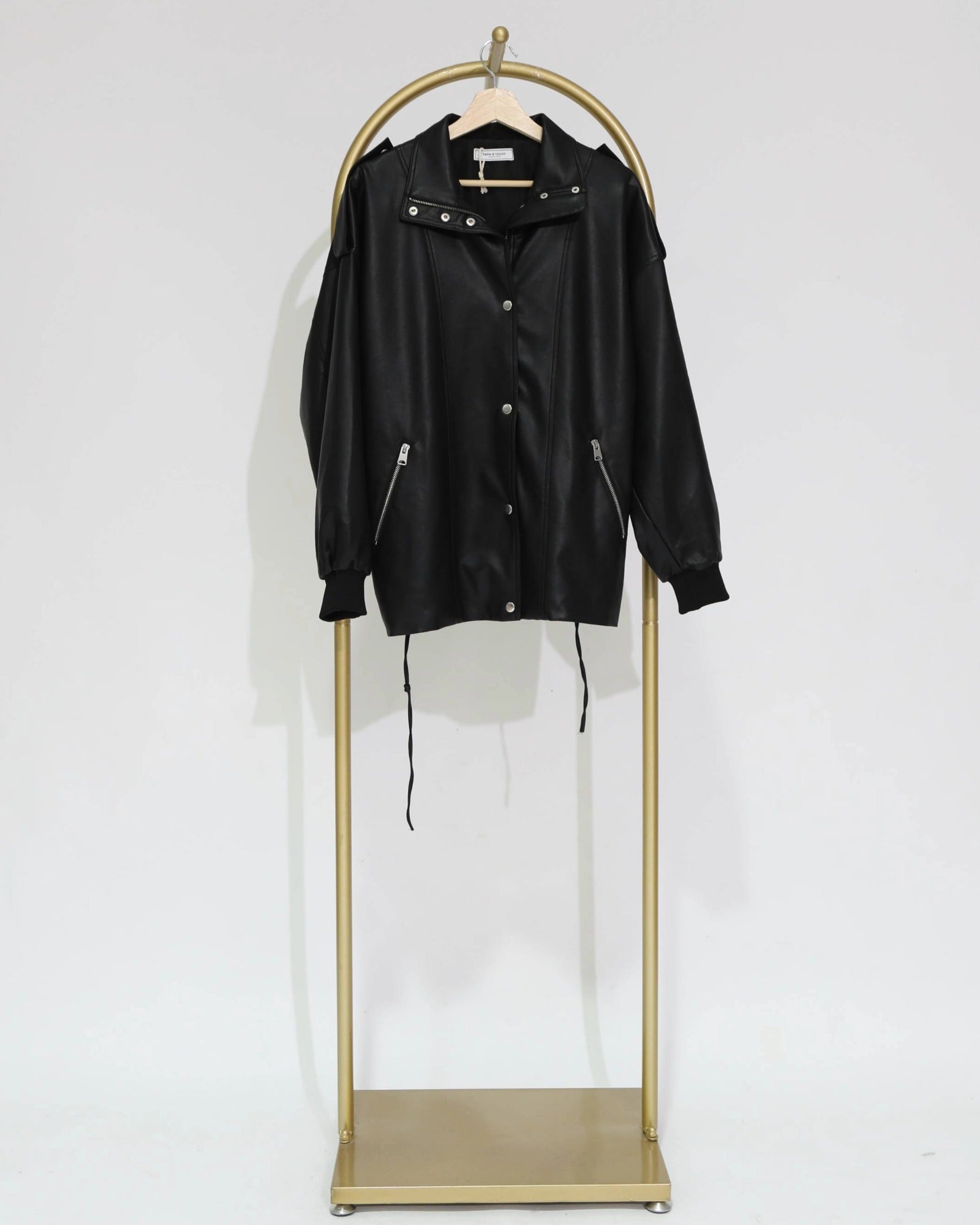 A modern outerwear essential with an effortless edge. Crafted from smooth faux leather, this relaxed jacket features a snap-button front, zip pockets and adjustable drawstring detailing through the waist for a flattering fit. Finished with ribbed cuffs and a structured collar, it’s perfect for layering season to season.
