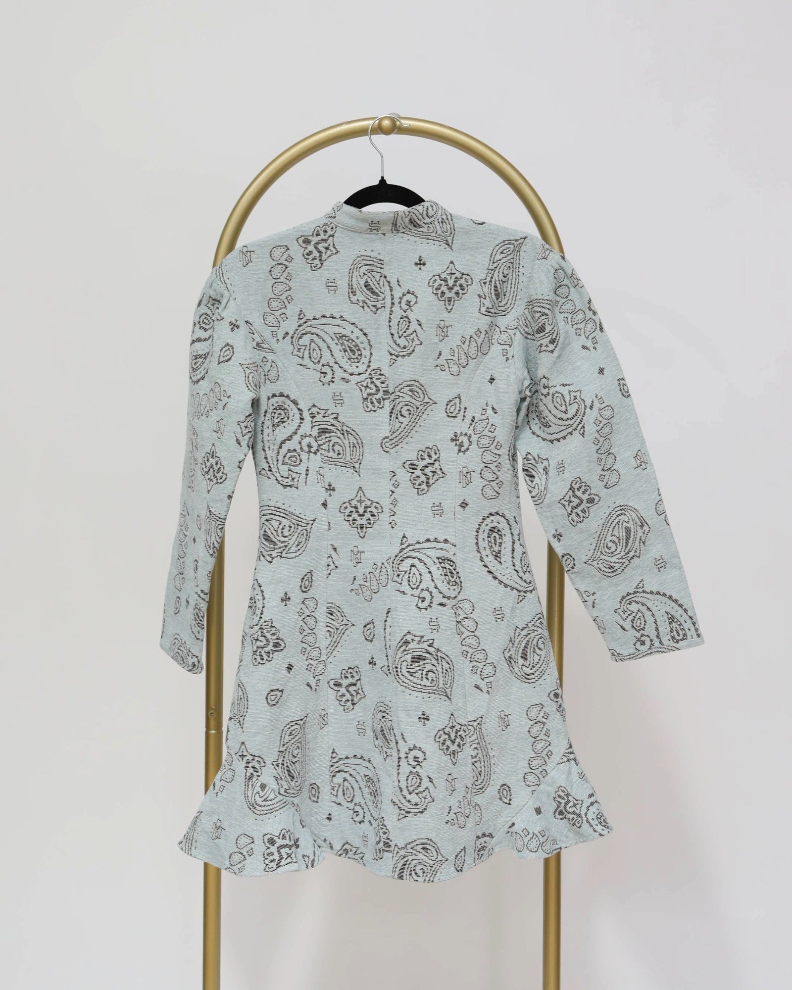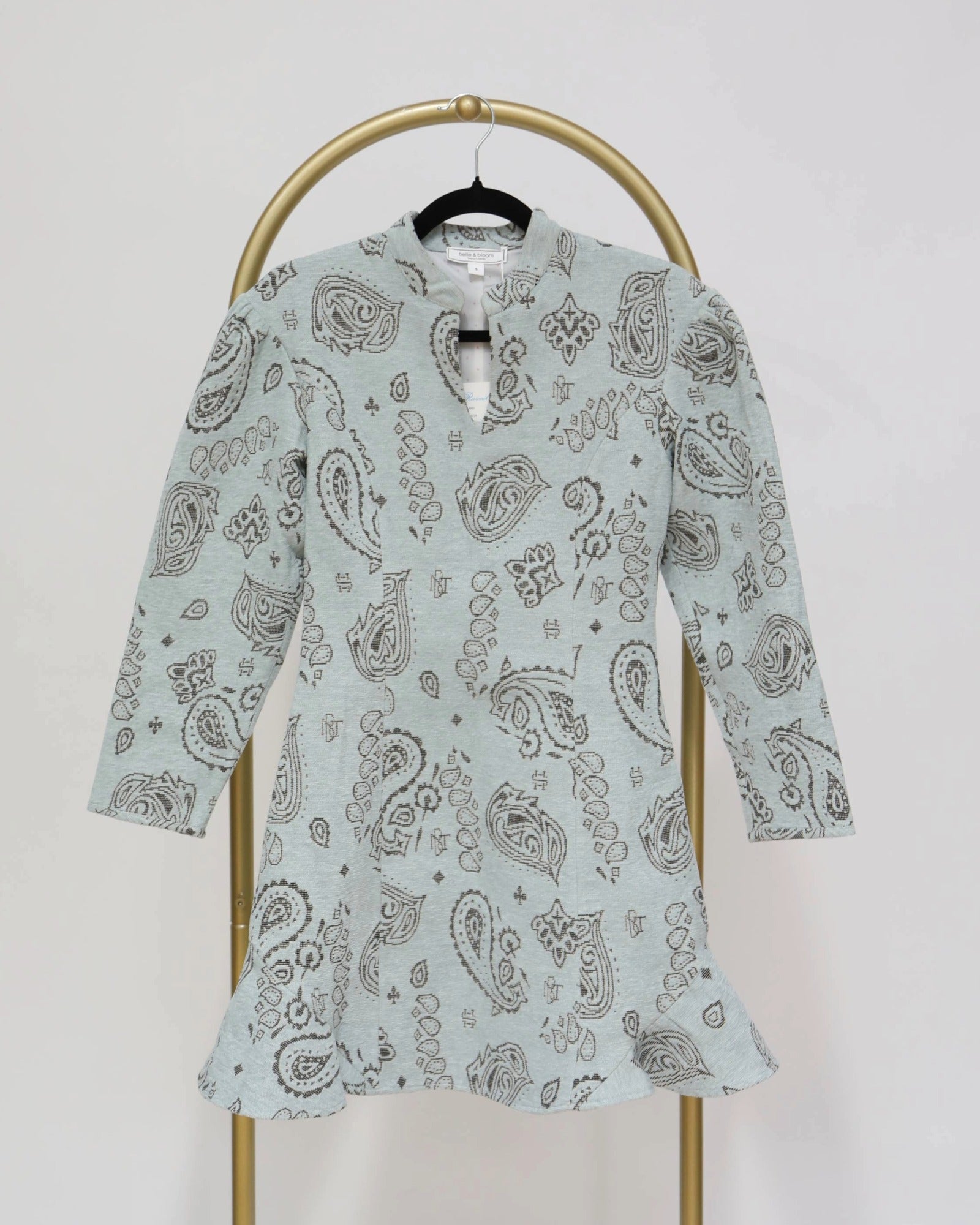 Elevate your everyday style with this soft, easy-to-wear mini dress featuring an all-over paisley print. Designed with long sleeves and a subtle flared hem, it brings a feminine touch to a relaxed silhouette. Perfect for pairing with boots or sneakers for an effortless, chic look.