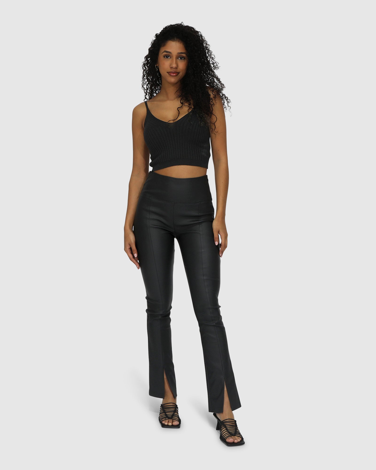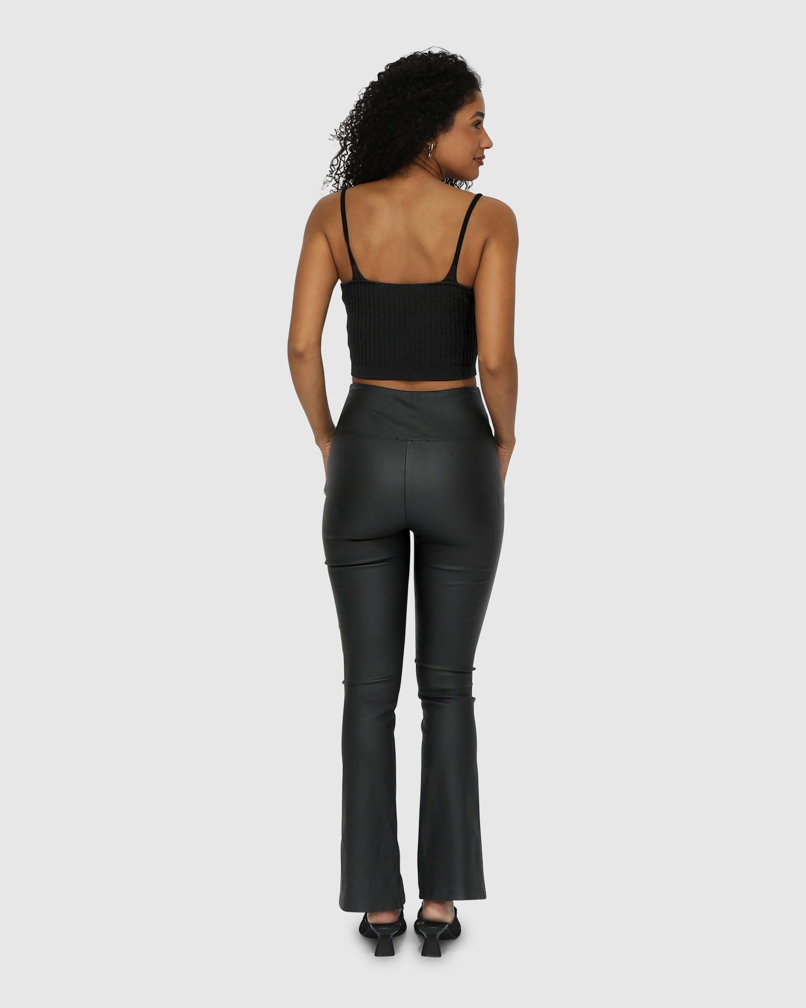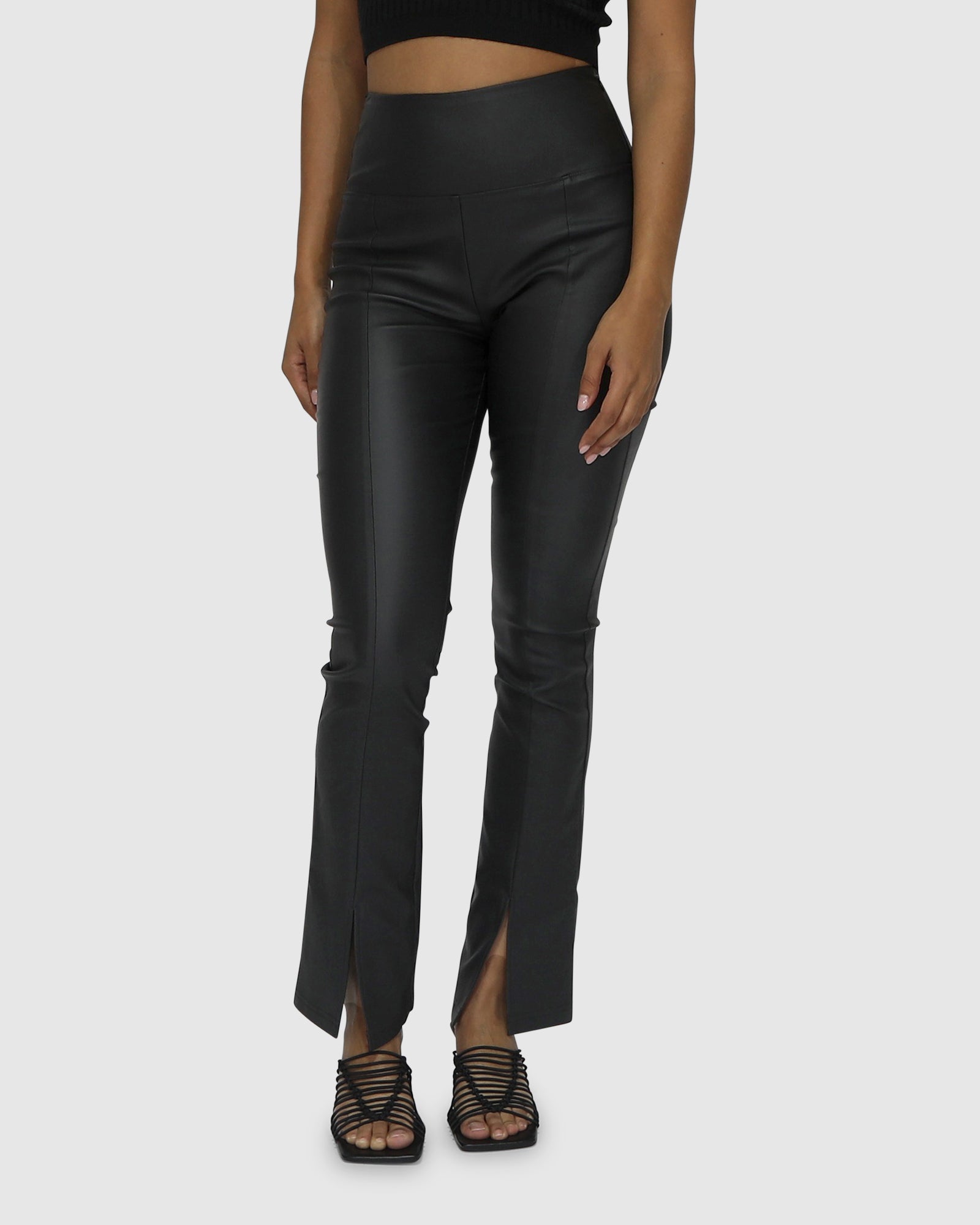 Our best selling “City Slicker” has a new sister! The Midnight Rider Bootleg Pant features the same flattering, comfortable waistband and high stretch leather-look coated fabric that we all love, with added front seams and splits to create the perfect bootleg silhouette – a must have for every wardrobe.