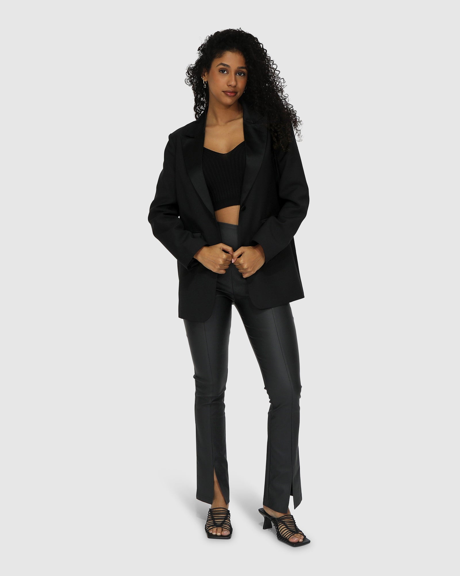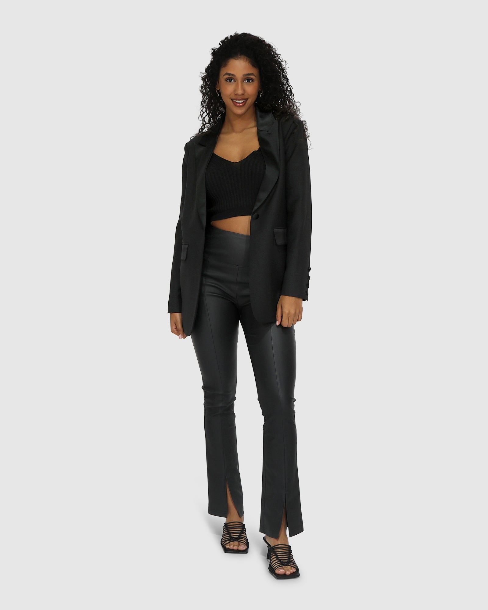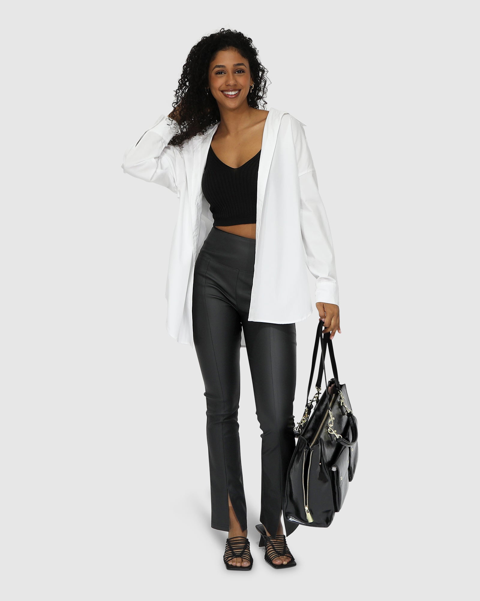 Our best selling “City Slicker” has a new sister! The Midnight Rider Bootleg Pant features the same flattering, comfortable waistband and high stretch leather-look coated fabric that we all love, with added front seams and splits to create the perfect bootleg silhouette – a must have for every wardrobe.