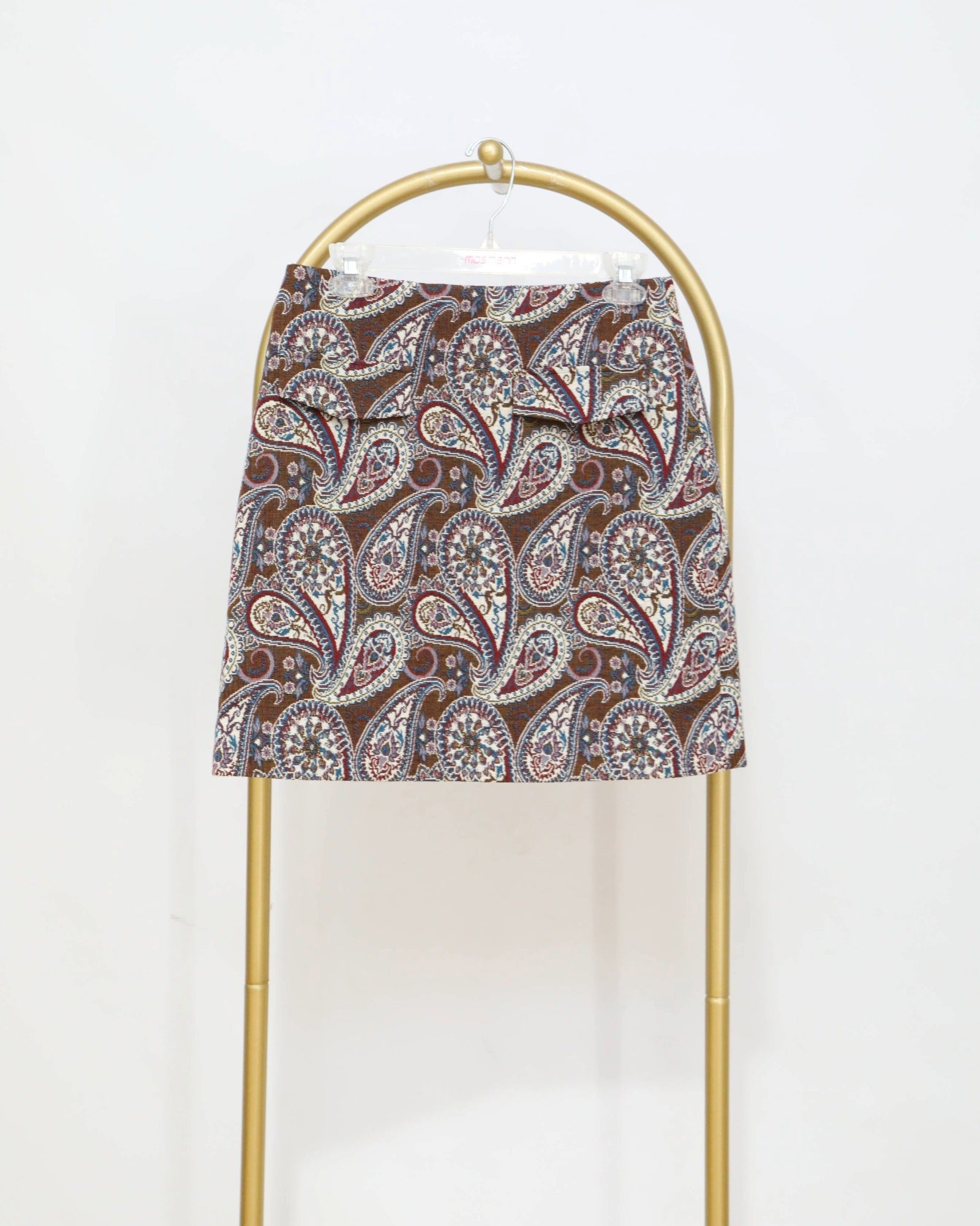 A statement mini skirt designed to elevate everyday styling. This paisley print skirt features a clean high-waisted silhouette with a structured fit and smooth finish. Finished with a classic mini length and rich tonal detailing, it’s an effortless piece to pair with knits, blouses or boots.