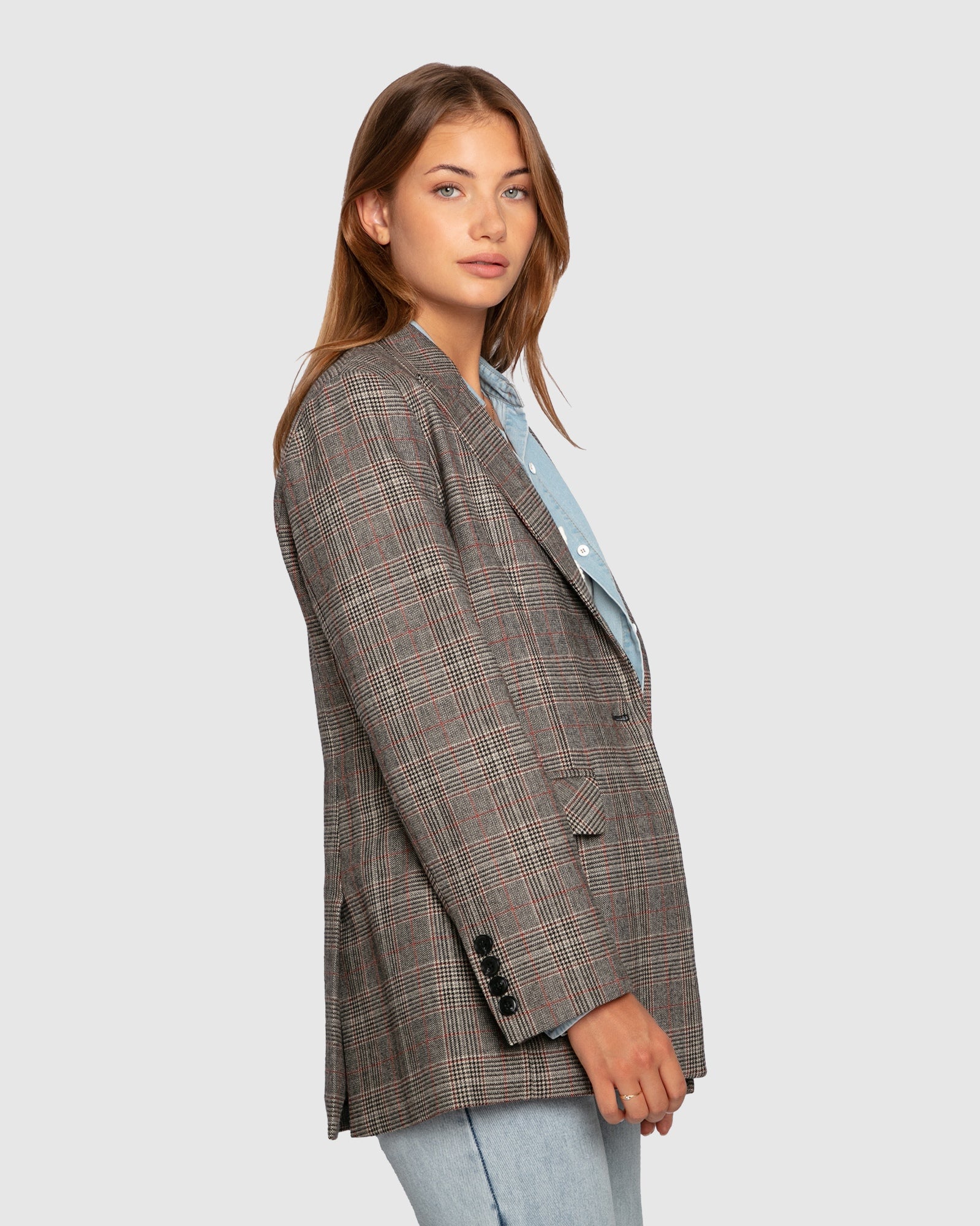 Model is wearing size S. She is 180cm tall with a bust of 84cm, waist of 71cm and hips of 94cm. Shoe size 39.