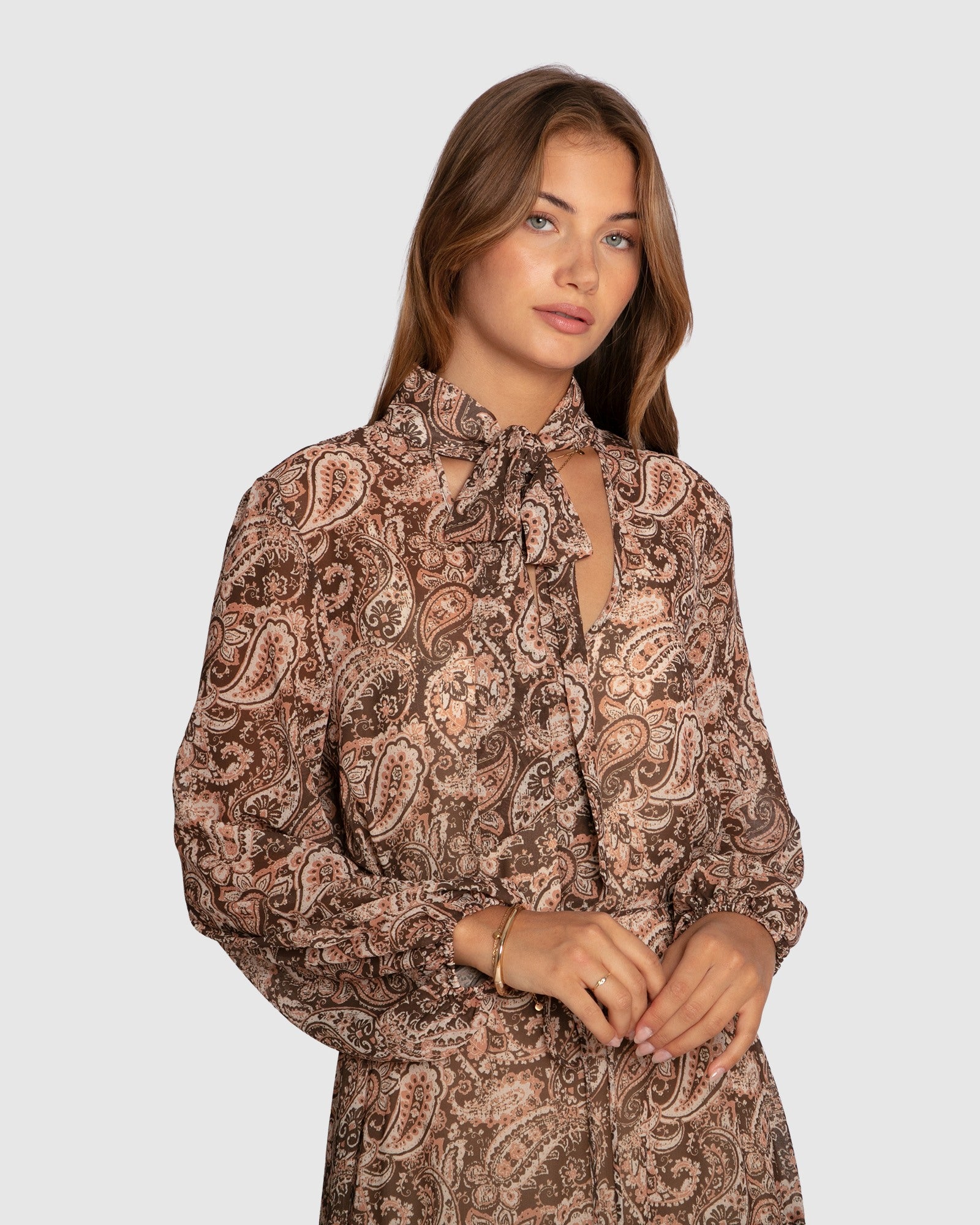 The Waterfall Printed Maxi Dress is a softly flowing style designed to move beautifully with the body. Featuring a relaxed silhouette with gentle drape through the skirt, it offers an effortless balance of elegance and ease, perfect for day-to-evening wear.