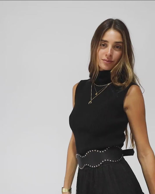 Model is wearing size S. She is 180cm tall with a bust of 84cm, waist of 71cm and hips of 94cm. Shoe size 39.