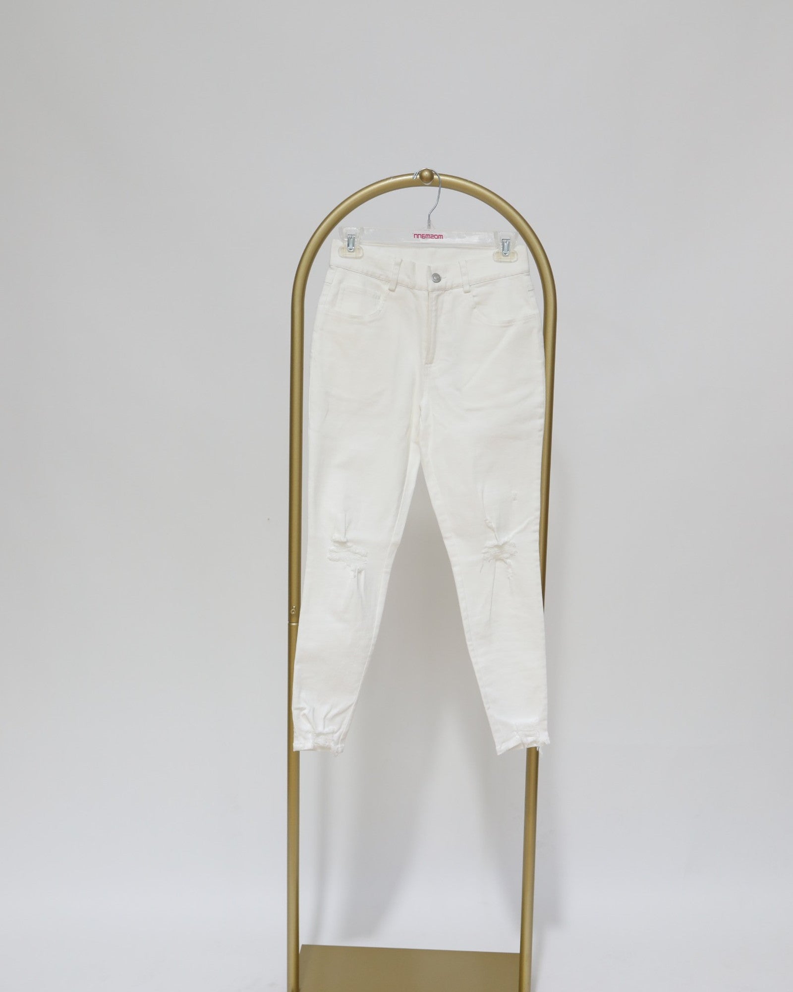 A fresh take on everyday denim, these white jeans are designed with a flattering high-rise waist and a slim, tapered leg for a clean, modern silhouette. Crafted from stretch denim for all-day comfort, they’re finished with classic five-pocket styling and subtle distressing for an effortless, lived-in feel.